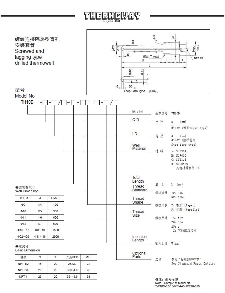TH10D螺纹连接隔热型盲孔安装套管