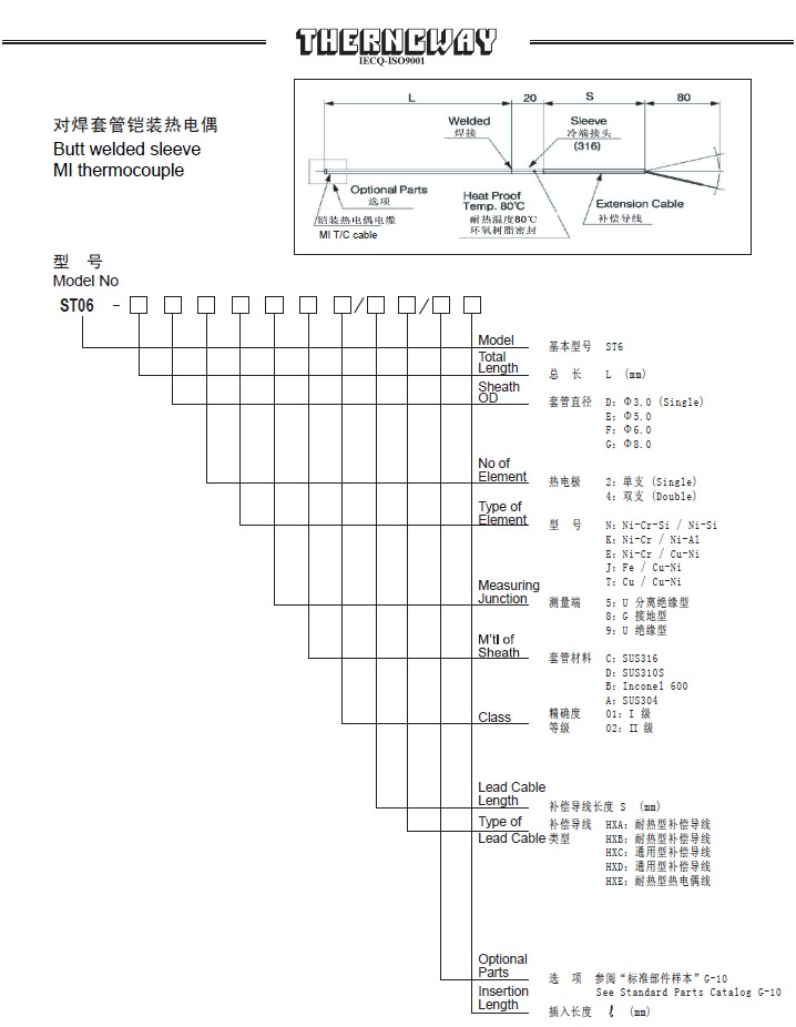 ST06对焊套管铠装热电偶
