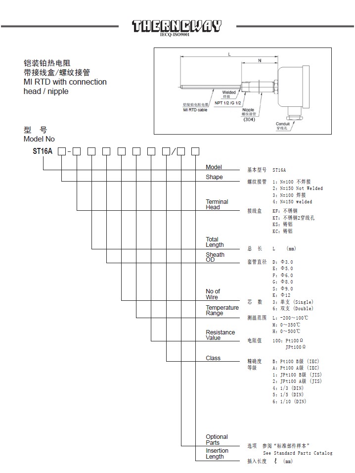 ST16A铠装铂热电阻带接线盒/螺纹接管