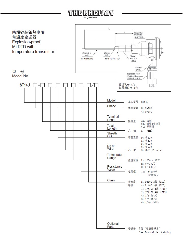 ST14U防爆铠装铂热电阻带温变